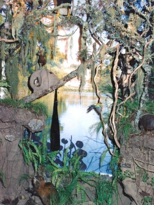 Diorama de Monte Criollo, con hornero y su nido, mulita, nutria, etc.